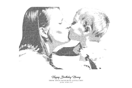 Beautifully presented in sealed Cello bags and with backing-board. Only £25.00 with 2nd class postage included. You can choose your own special wording to have incorporated within the print, 20+ meaningful words can be used and duplicated, plus a personal message below the artwork can be added to finish the piece off nicely. Photos can be provided through email jenny@thekilnscreative.co.uk Please note: photo background tend to be removed to create the full affect, High resolution images (300DPI) would be preferred and head shots are best suited for the maximum wow-factor results. Some photos may not be suitable i.e. busy group shots or distance imagery but you will be informed and further discussion will be carried out.